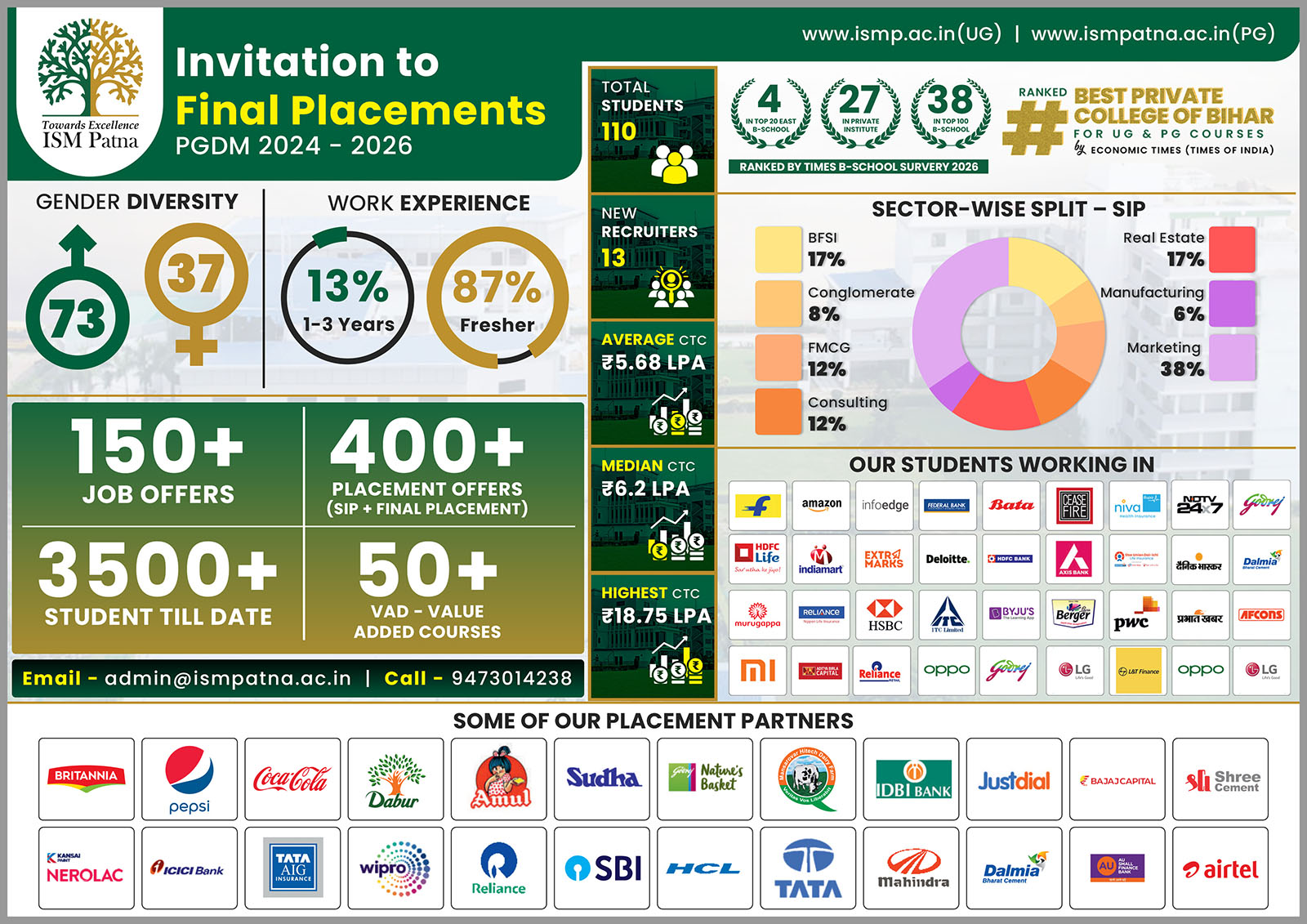 | 77 | MD SAQUIB | PGDM2022100 | Human Resource Management | Marketing | Star Union Dai ichi Life Insurance | Insurance Trainee | 2.6 LPA +Incentives | |||